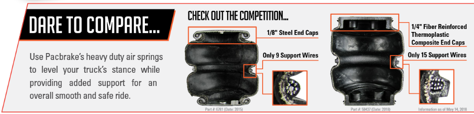 Pacbrake ALPHA air bags are part of a complete lineup of air suspension systems designed to match different truck weights and usage profiles.