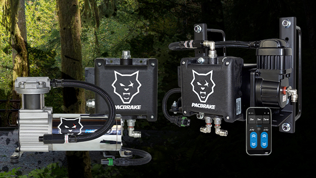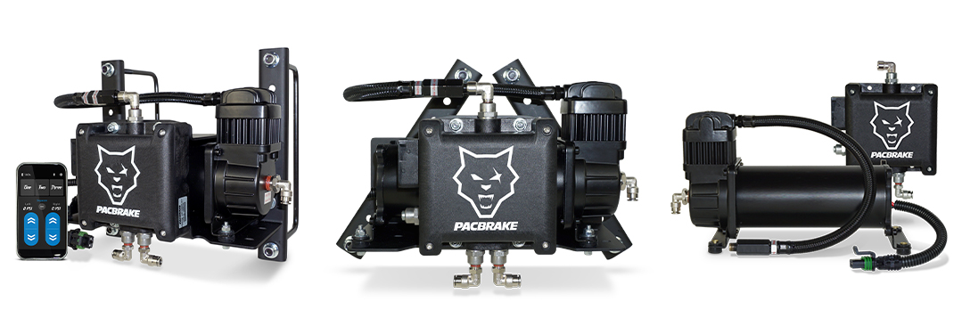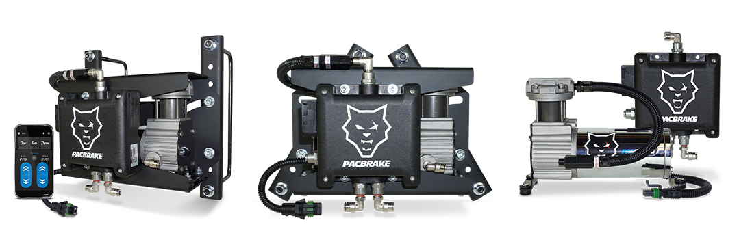 Pacbrake’s wireless controls are IP67 water and debris resistant, with sealed, waterproof compressors and manifold assemblies built for weatherproof durability. BRAVO™ also highlights waterproof compressor/manifold construction and pre-installed push-to-connect fittings intended to simplify installation.